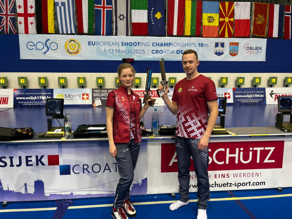 Šodien, 10.martā Horvātijā, Osijekā Eiropas čempionāts šaušanā ar pneimatiskajiem ieročiem norisinājās jaukto pāru sacensība. Kvalifikācijā visi dalībnieki izpildīja 30 šāvienus, komandas rezultātu veidoja abu sportistu (vienas sievietes un viena vīrieša) sašauto punktu summa.