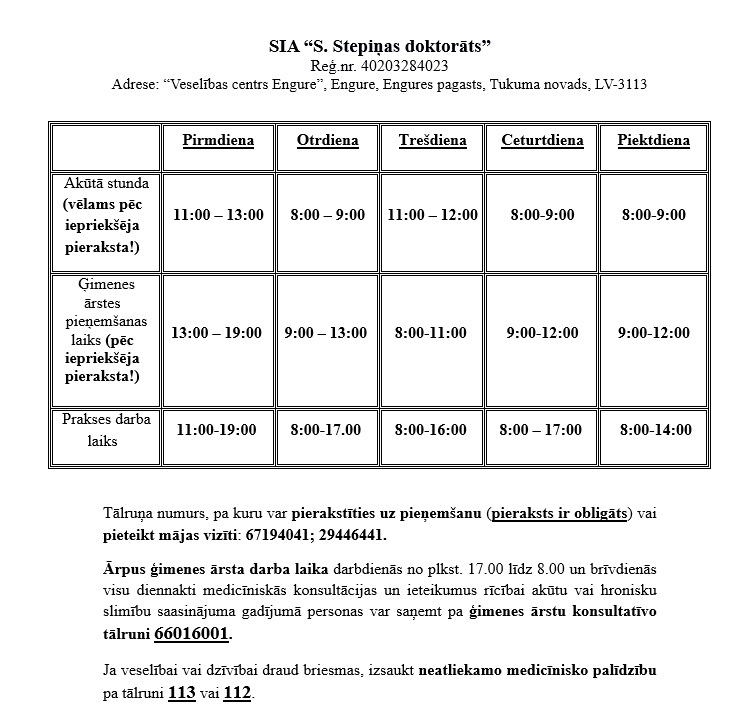Engurē ir atvērta ģimenes ārstes Santas Stepiņas prakses vieta, kur nodrošinās pacientiem pilnvērtīgu primāro veselības aprūpi. Jaunatvērtajā ārsta prakses vietā, kā ārsta palīgs strādās Ieviņa Rožinska.