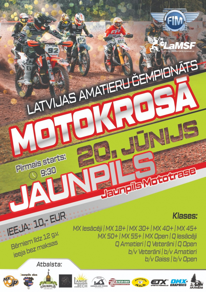Svētdien, 20. jūnijā Jaunpilī, Jaunpils mototrasē notiks Latvijas Amatieru čempionāta pirmais posms motokrosā, kurā pulcēsies ātrākie šī sporta veida amatieri.