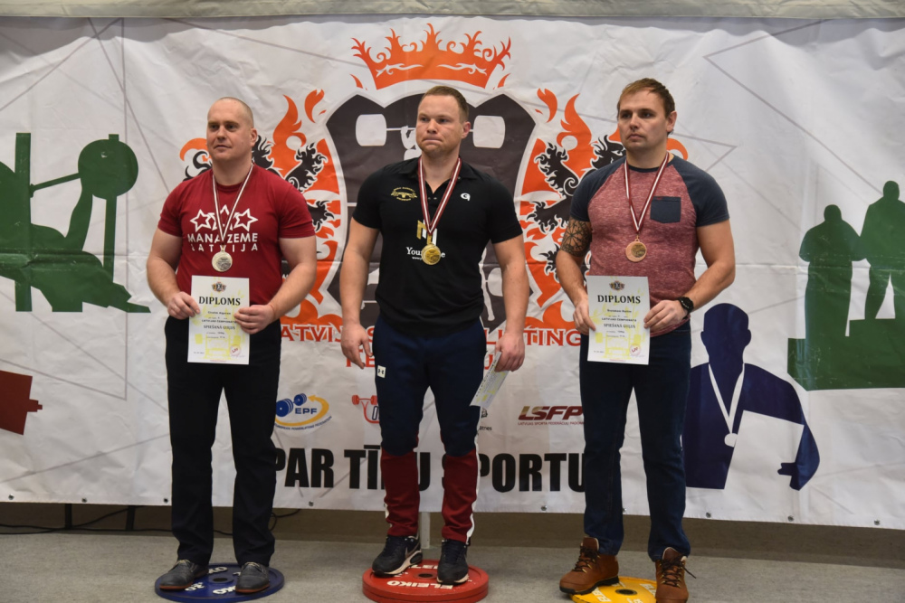 Sporta kluba "Gold Barbell Tukums" pārstāvis virs krūtīm pacēla 196,5kg un labojot Latvijas rekordu, izcīnīja zelta medaļu. Otrajā vietā palika Aigars Cīrulis, bet Latvijas čempionata bronzu izcīnīja Raitis Štotaks.