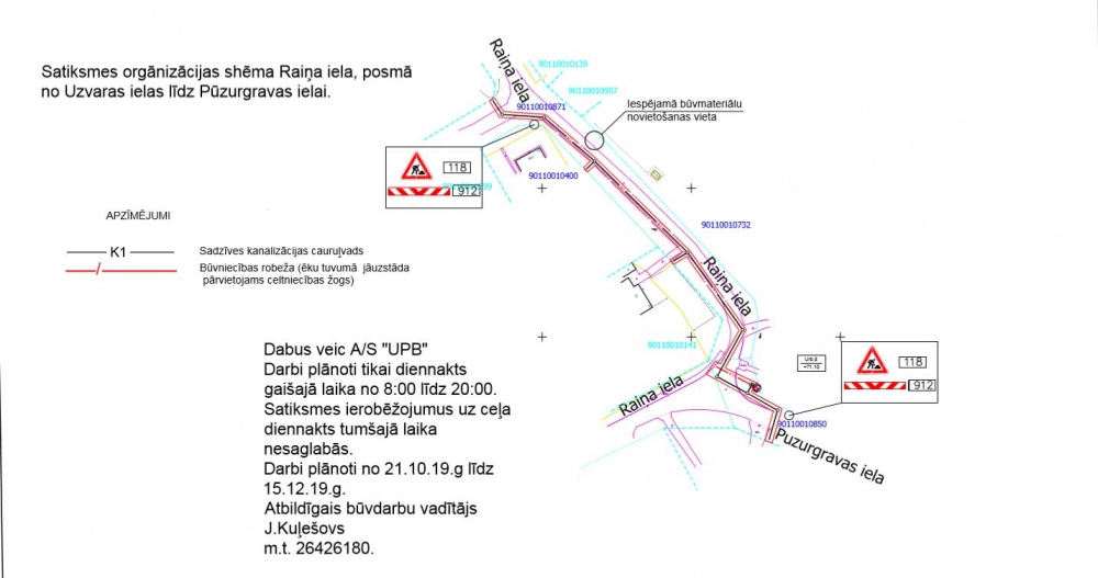 No šī gada 14.oktobra līdz 31.novembrim paredzēta daļēja kustības ierobežošana Raiņa ielā, posmā no Liepu ielas līdz Pūzurgravas ielai. Savukārt no 21.oktobra līdz 15.decembrim paredzēta daļēja kustības ierobežošana posmā no Uzvaras ielas līdz Pūzurgravas ielai.