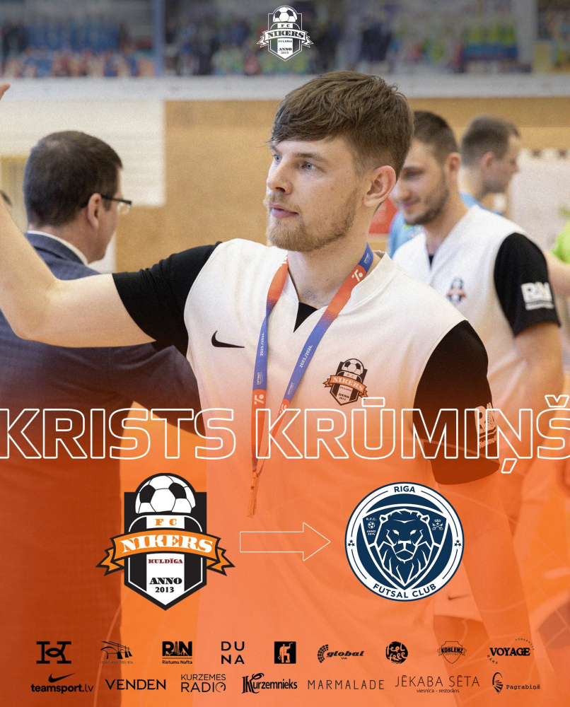 Latvijas telpu futbola čempionvienībai "Riga" pievienojies nepilnus 26 gadus vecais tukumnieks Krists Krūmiņš, kurš iepriekš spēlēja Kuldīgas "Nikars" un aizvadītajā sezonā Latvijas čempionātā ar šo komandu izcīnīja bronzu.