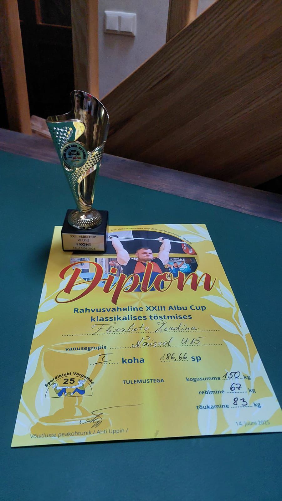 No 13. Līdz 15. jūnijam Igaunijā pilsētā Albu notika atklātās svarcelšanas sacensības "Albu kauss XXlll", kurās uzstādot vairākus U15 vecuma grupas Latvijas rekordus, 1. vietu izcīnījaTukuma novada sporta kluba "Brāļi" sportiste Elizabete Žerdiņa.