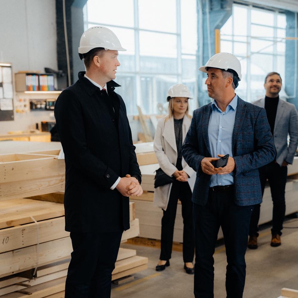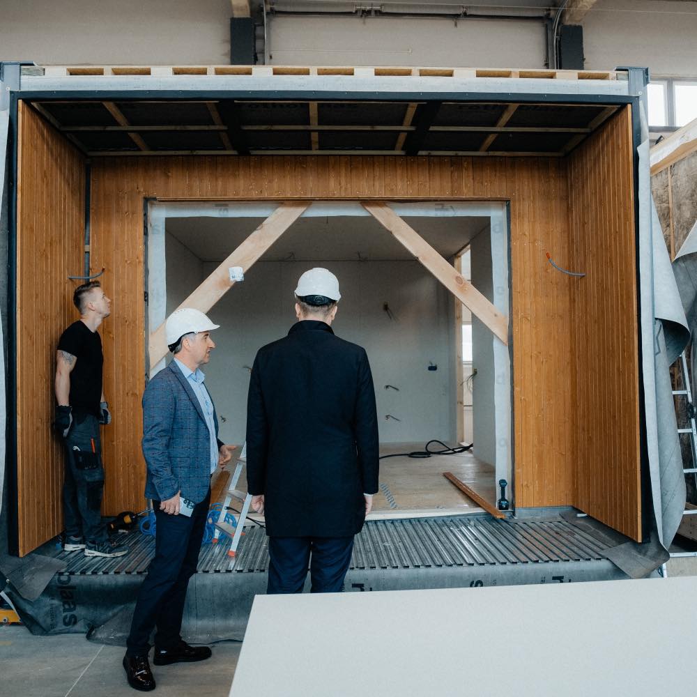 Tālāk Valaiņa ceļi veda uz uzņēmumu "ReBalt", kas nodarbojas tieši ar daudzstāvu namu būvniecību. Viņu sagaidīja Ēvalds Zunda un Jānis Lagzdiņš. Pirmās Latvijā ražotās koka zemas īres maksas daudzdzīvokļu ēkas iedzīvotājiem būs pieejamas jau vasaras beigās.