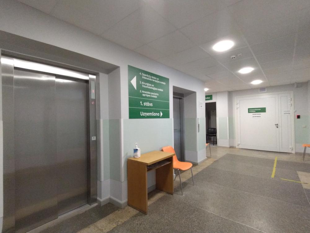 - Uzņemšanas nodaļas stāvs (atjaunošanas darbi, ieejas mezgls, uzgaidāmā telpa, durvis, invalīdu tualetes);