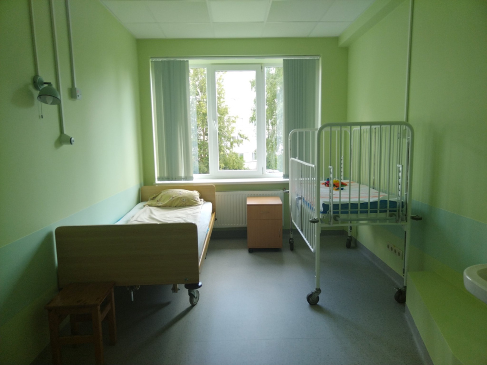 - Bērnu nodaļas 2. stāvs (prasībām atbilstošu palātu atjaunošanas darbi, elektroinstslācija, kanalizācija, vājstrāvas sistēma, sanitāro mezglu atjaunošanas darbi).