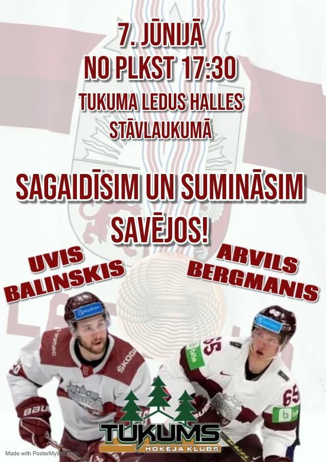 Latvijas hokeja izlase šogad pirmo reizi Latvijas sporta vēsturē iekļuva pasaules labāko komandu trijniekā, Somijas pilsētā Tamperē izcīnot bronzas medaļas Pasaules čempionātā hokejā. Izlases sastāvā spēlēja arī savulaik Tukuma hokeja sistēmu pārstāvošie Uvis Jānis Balinskis un Arvils Bergmanis. Par godu viņiem, 7. jūnijā Plkst. 17:30 pie Tukuma ledus halles tiks organizāts šo hokejistu sumināšanas pasākums.